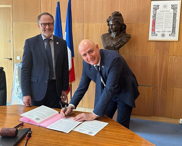 On Monday, July 7, 2025, in Paris, in the premises of the Council of the Order of the Grand Orient of France, the Grand Master of the Grand Orient of France, M:.W:. Nicolas Penin and Grand Master of the Liberal Grand Lodge of Serbia M:.W:. Vladimir Marković signed the Agreement on mutual recognition and amity between the two European obediences. This act represents a significant recognition of the work of the Liberal Grand Lodge of Serbia and certainly contributes to the further growth and strengthening of Masonic traditions and values in Serbia and on the Western Balkans.