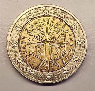On the back side of the French edition of the One Euro coin it is written: "Liberty- Equality - Brotherhood"